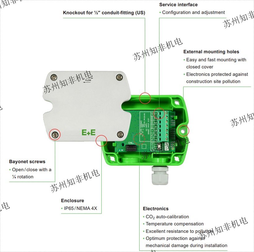 EE850 在創(chuàng)新型外殼中結(jié)合了 CO? 和溫度 (T) 測(cè)量。它非常適用于按需通風(fēng)和樓宇自動(dòng)化。EE850 的 CO? 測(cè)量范圍可達(dá) 10,000 ppm,工作溫度范圍為 -20...+60 °C(-4...+140 °F),因此也可用于要求苛刻的氣候和過(guò)程控制應(yīng)用。EE850 采用 E+E 雙波長(zhǎng) NDIR CO? 傳感器,能夠補(bǔ)償老化影響,對(duì)污染高度不敏感,并提供的長(zhǎng)期穩(wěn)定性。