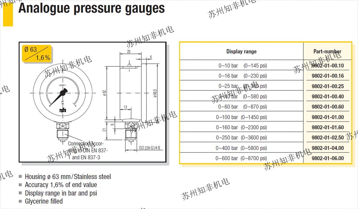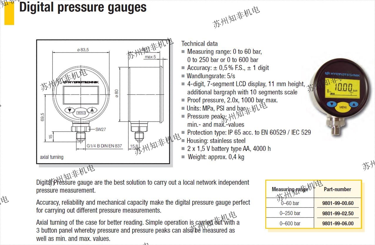 hydrotechnik壓力表線S100-AA-AJ-0063