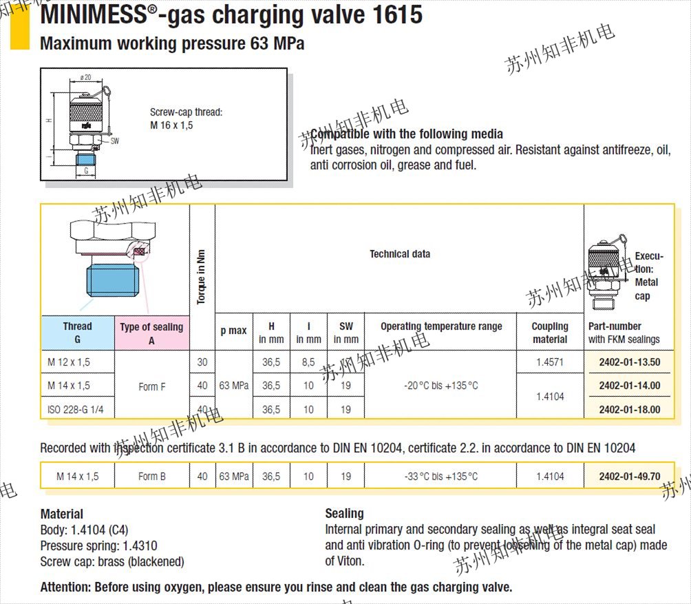 200 40MPa S100-AC-AL-0020 63MPa S110-AC-AL-0020
