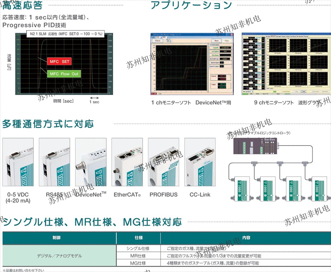 產(chǎn)品特點(diǎn)4:具有高精度、快速響應(yīng)、零漂低等特點(diǎn),還具備多氣體多量程(MG/MR)功能,可在客戶端簡單操作進(jìn)體種類和流量變更。