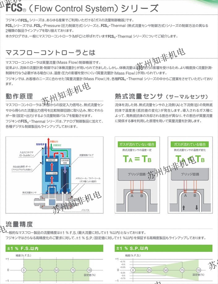 一般的なマスフロー製品の流量精度は±1% F.S. (流量に対して±1%以內(nèi))となっております。