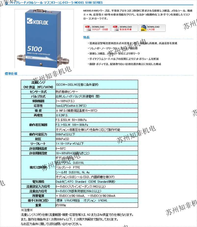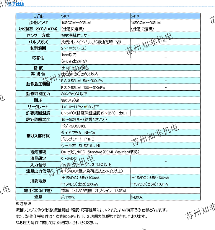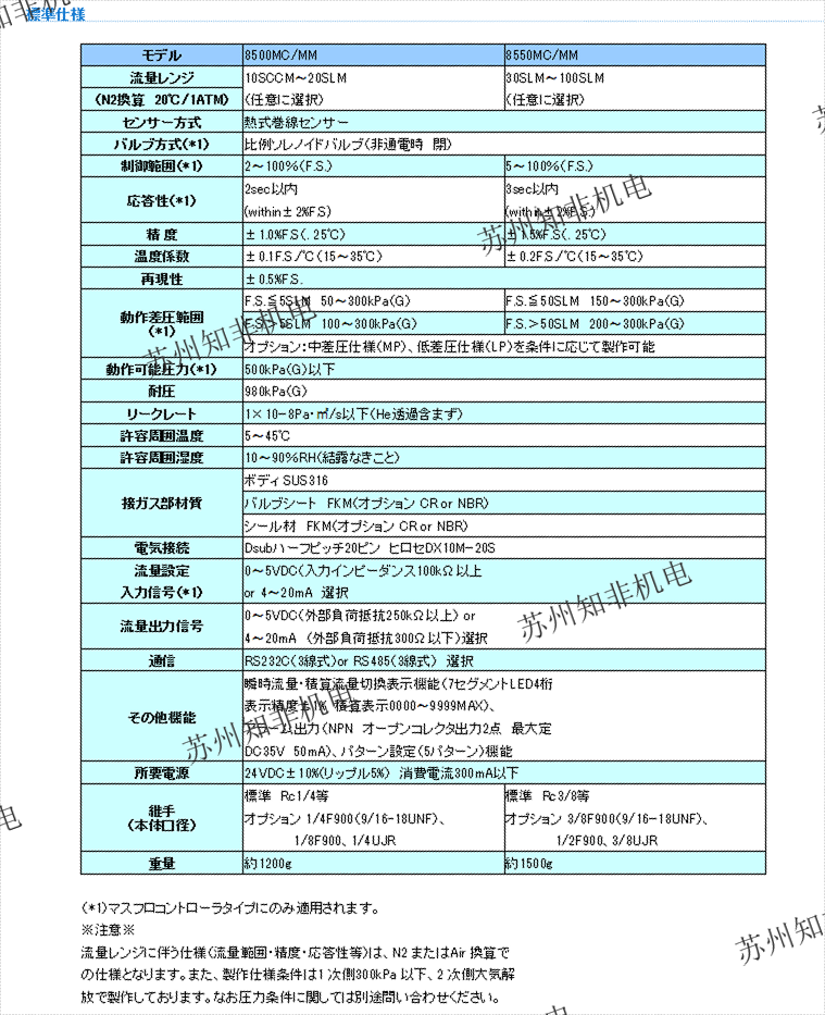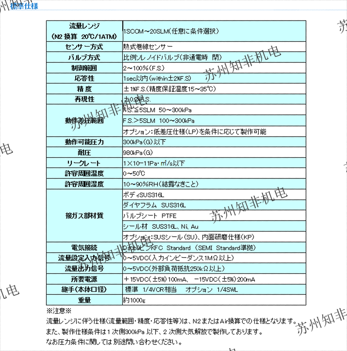 流量FS(N2換算):10SCCM-300SLPM