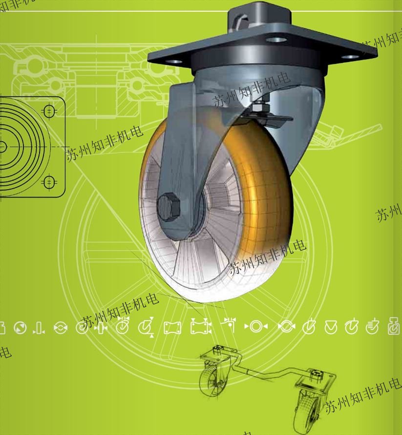輕型腳輪和單輪主要適用于室內(nèi)范圍。設(shè)計(jì)速度為 3 km/h。典型應(yīng)用于醫(yī)療儀器、顯示屏機(jī)架、大型廚具等
