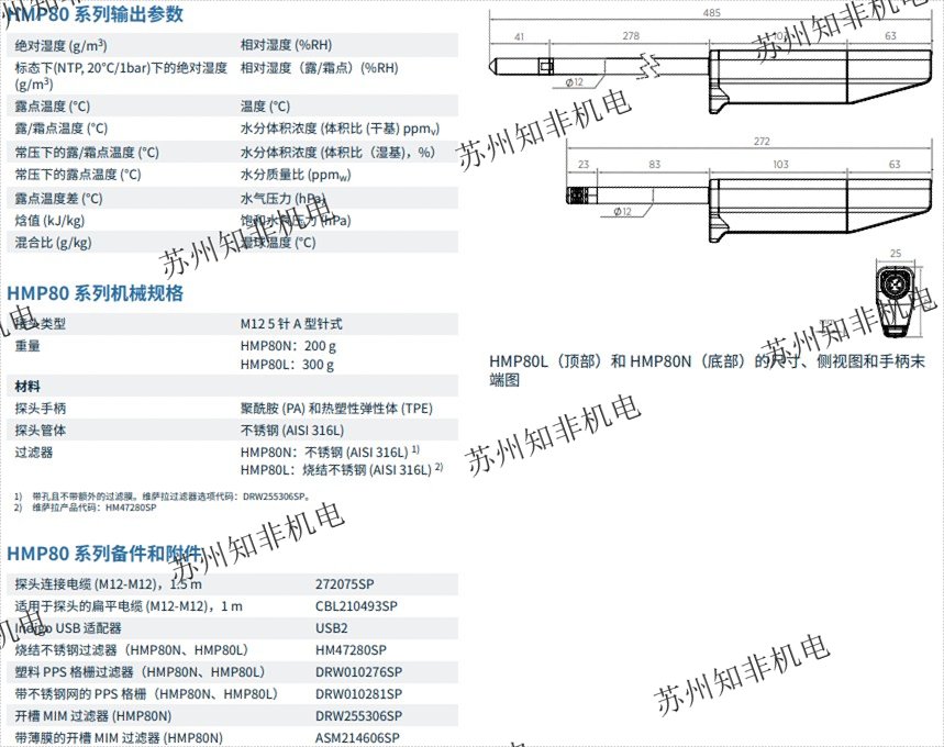 維薩拉HMP80系列手持式濕度和溫度探頭備件和附件