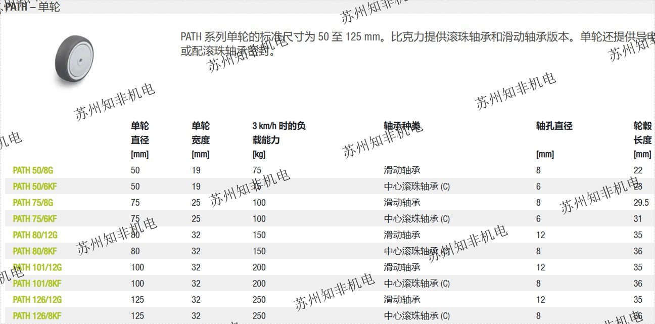 PATH 系列的胎面由硬度為 94 Shore A 的熱塑性聚氨酯制成,胎面澆鑄在尼龍 6 輪芯上,形成堅(jiān)固的化學(xué)粘合。它還無痕,且不染色。PATH 系列的特點(diǎn)是滾動(dòng)和旋轉(zhuǎn)阻力極小。