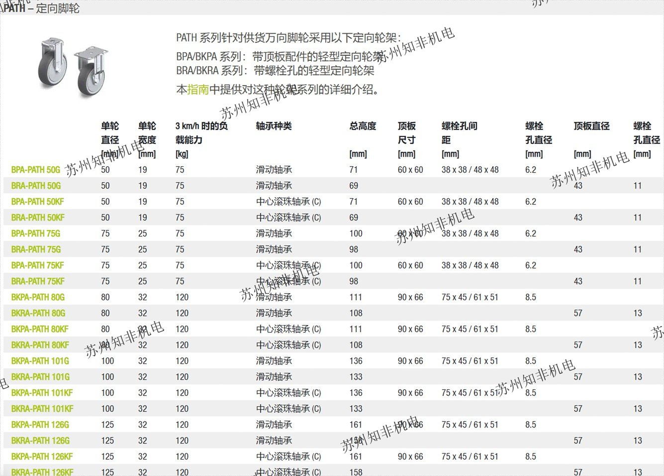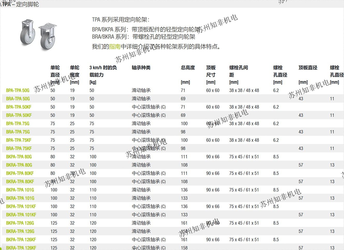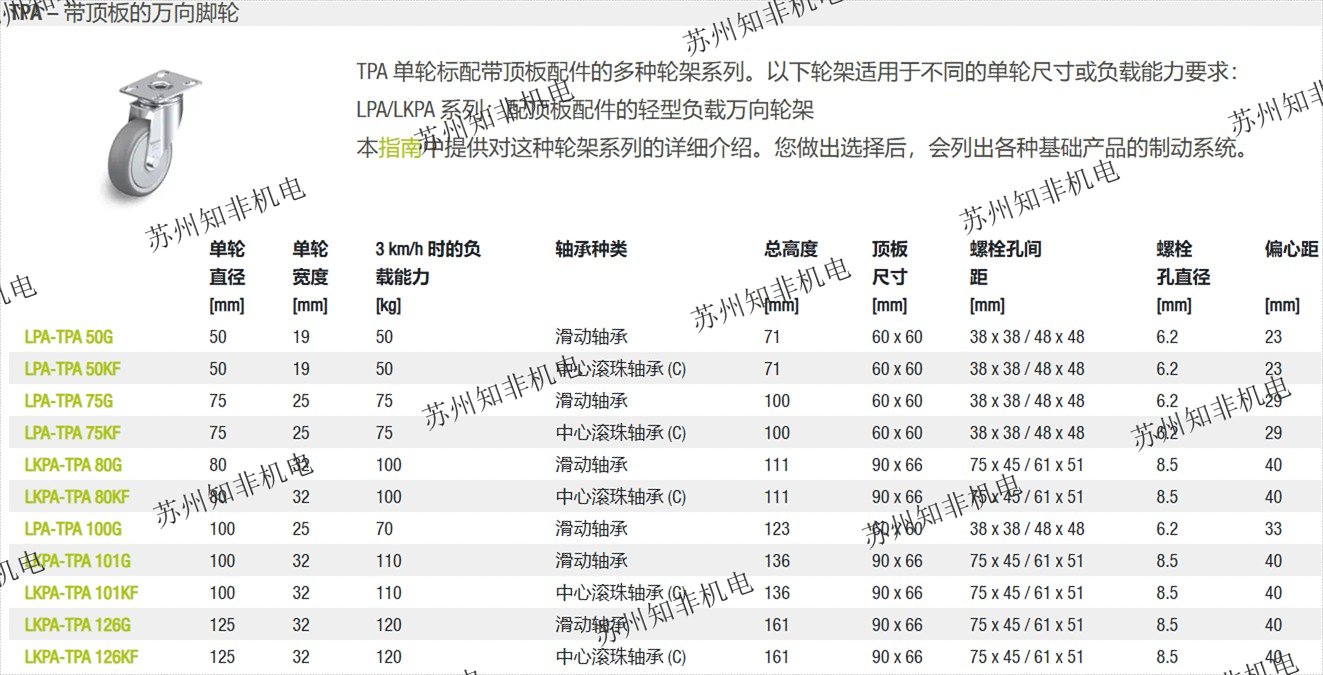 BPA/BKPA 系列:帶頂板配件的輕型定向輪架