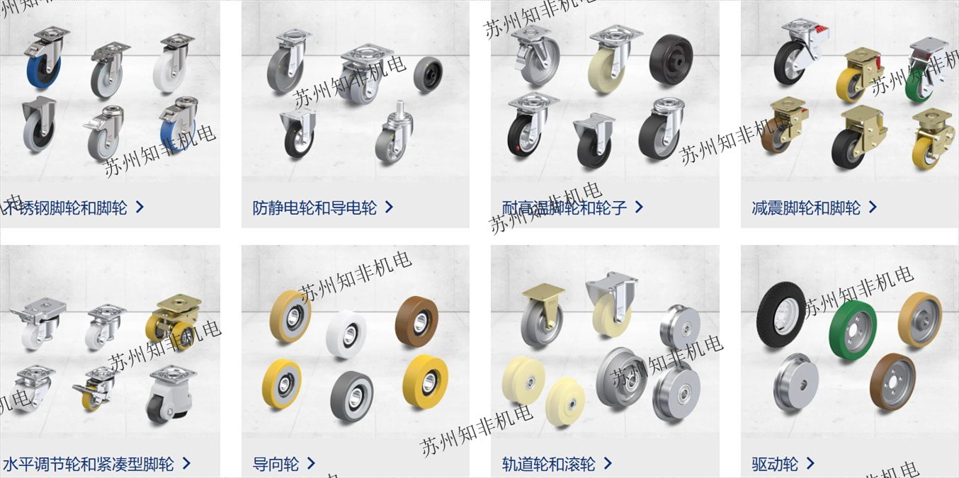 比克力單輪和腳輪可應(yīng)用于商業(yè)貨車、供膠箱機(jī)架、輸送設(shè)備、線路拖車、運(yùn)送車、地板滑車和分類設(shè)備。內(nèi)部物品范圍涵蓋重型負(fù)載單輪、驅(qū)動(dòng)輪、負(fù) 載腳輪、萬向腳輪、定向腳輪、裝有減震彈簧的腳輪和導(dǎo)向滾輪??晒┴浀男吞柊ǜ黝愔苿?dòng)系統(tǒng)、導(dǎo)電或抗靜電腳輪、地板保護(hù)性或可承受動(dòng)態(tài)高負(fù)載的單輪 和腳輪等。