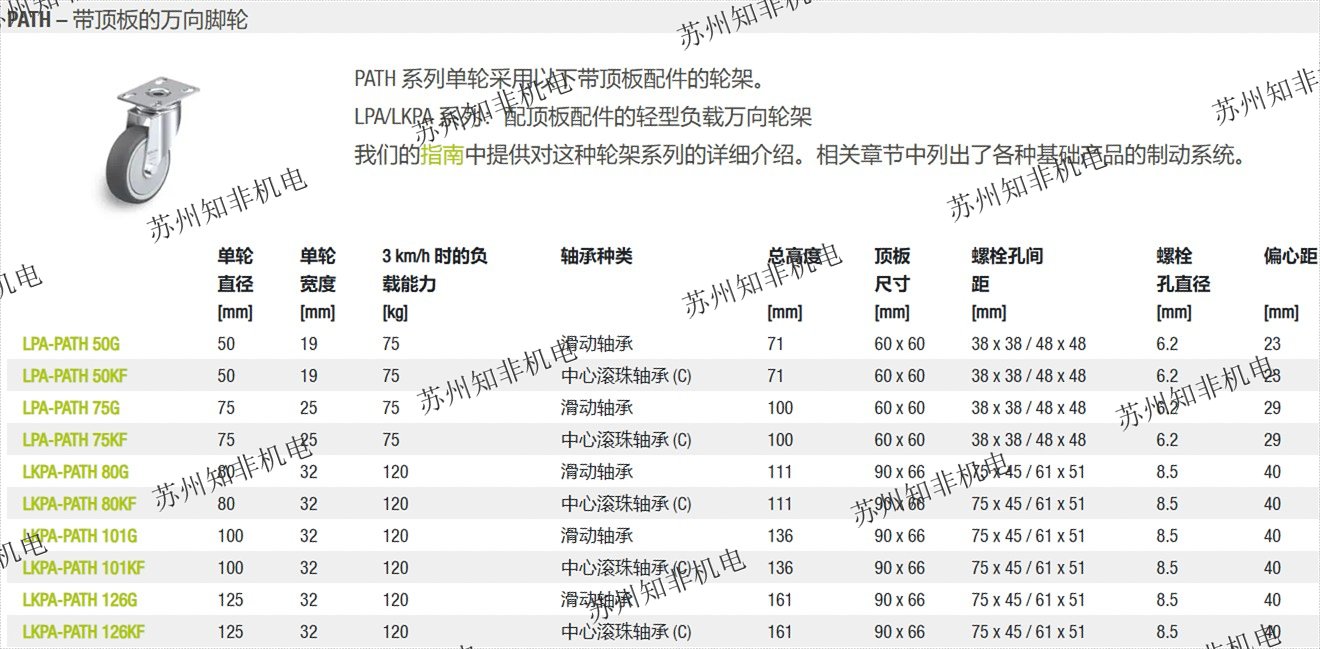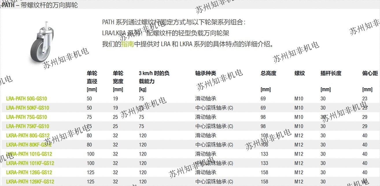 PATH 系列用于食品工業(yè)等領(lǐng)域中的工具推車、地面腳輪和衛(wèi)生應(yīng)用。