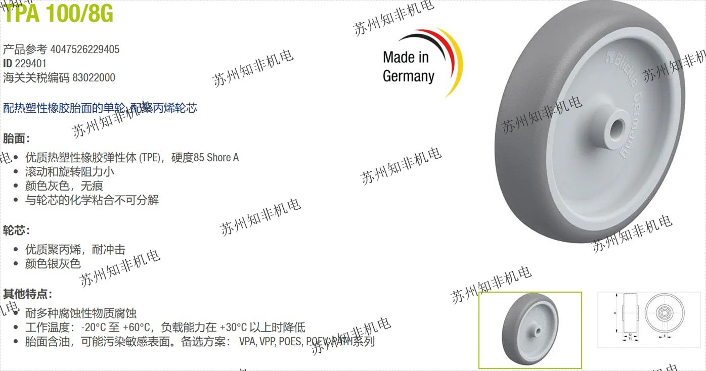 德國BLICKLE比克力LRA-TPA 100G-ES輕型萬向腳輪,FF100-1搬運(yùn)車制動(dòng)器,WH200千斤頂,LRXA-TPA、BRXA-TPA、LKRXA-TPA、BKRXA-TPA食品級單輪,LRXA-TPA80KFD-FI帶剎車萬向腳輪,LEX-TPA102KFD萬向腳輪,BX-TPA102KFD定向輪,LKPA-OES 102KF-29-SG 102KF-29-SG 102KF-29-FI-SG鋁型材輕型腳輪,LKFG-TPA126G LKFG-TPA126G-FI塑料腳輪,比克力BLICKLE中國總代理-蘇州知非機(jī)電設(shè)備有限公司